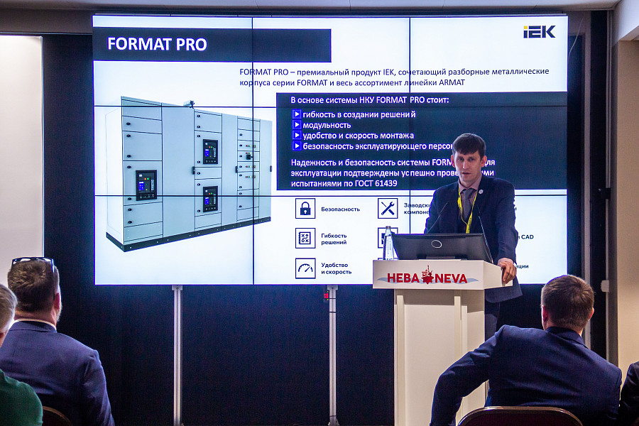 В технической секции конференции выступили представители компаний ДКС, КЭАЗ, IEK GROUP, CHINT, «Электрорешения» (бренд EKF), DIORA и «Русский Свет».